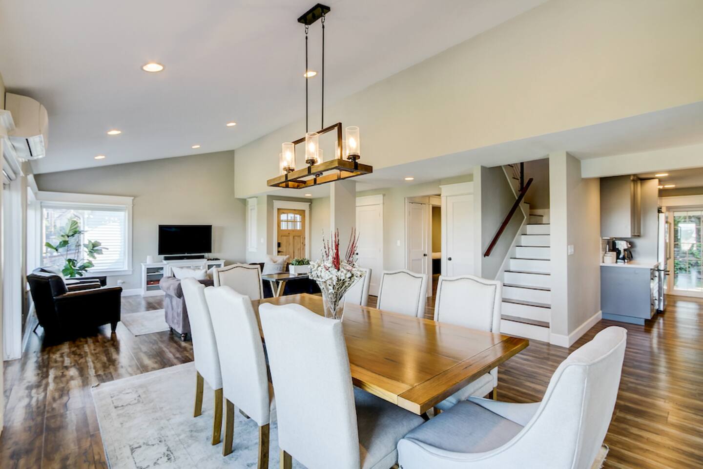 The home is located minutes from Seattle’s stadiums and features a balcony with views, along with a fully fenced backyard. Perfect for a game of bocce or simply relaxing outdoors. Inside, guests will find all the essential amenities, including a fully stocked chef’s kitchen designed for group meals and gatherings.